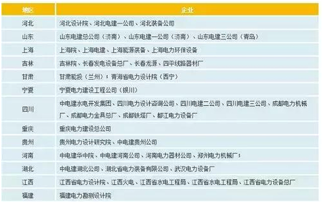 14个省(市、区)电力勘测设计、工程、装备制造企业系统企业:
