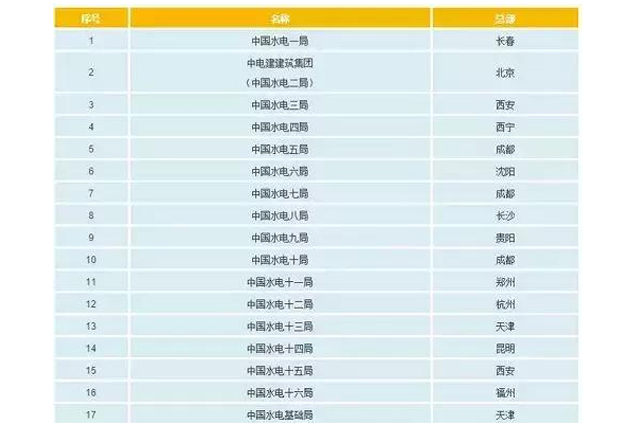 原中国水电17个工程局: