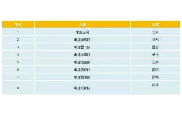 原中水顾问系统8个设计研究院: