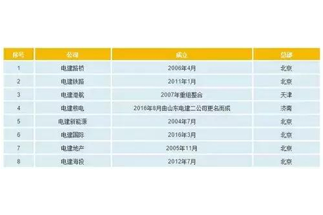另有电建租赁、电建装备研究院、北京华科软、电建水治理、电建(德国)等85家二级子公司、控股公司。