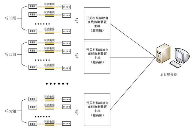 超高频传感器所检测的信号,经过同轴电缆送往开关柜局部放电在线监测装置(IED),进行放大、滤波、检波,数字脉冲提取、数字滤波、局放特征量计算等数字化处理,并完成局放可视化操作、局放判断、数据存储、数据上送等功能。