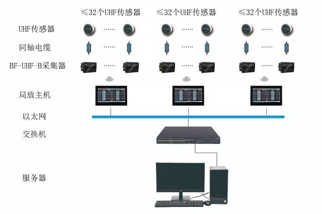 局放采集器通过同轴电缆接收超高频传感器所采集的局部放电信号。并对该进行进行滤波、检波、脉冲提取、数字滤波、局放特征量计算等数字化处理,并进行局放判断、数据存储、数据上送等功能。