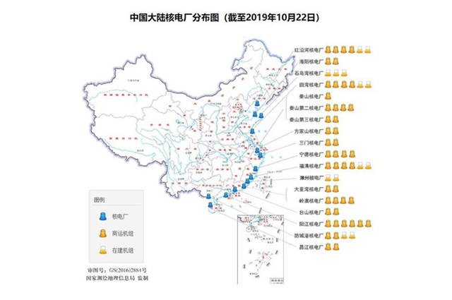 日前,国家核安全局更新了中国大陆核电厂分布图(截至2019年10月22日)。