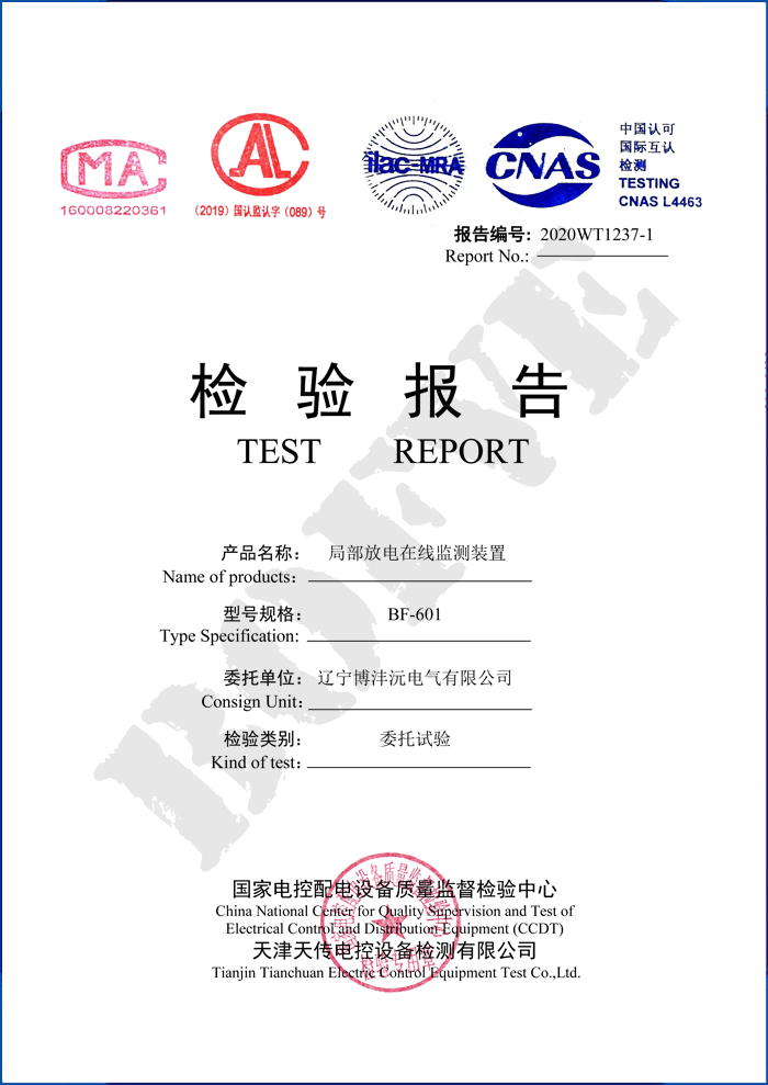 BF-601局部放电在线监测装置检验报告