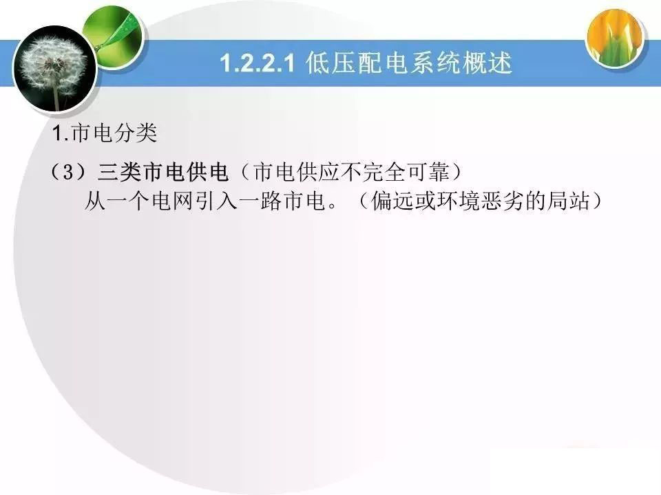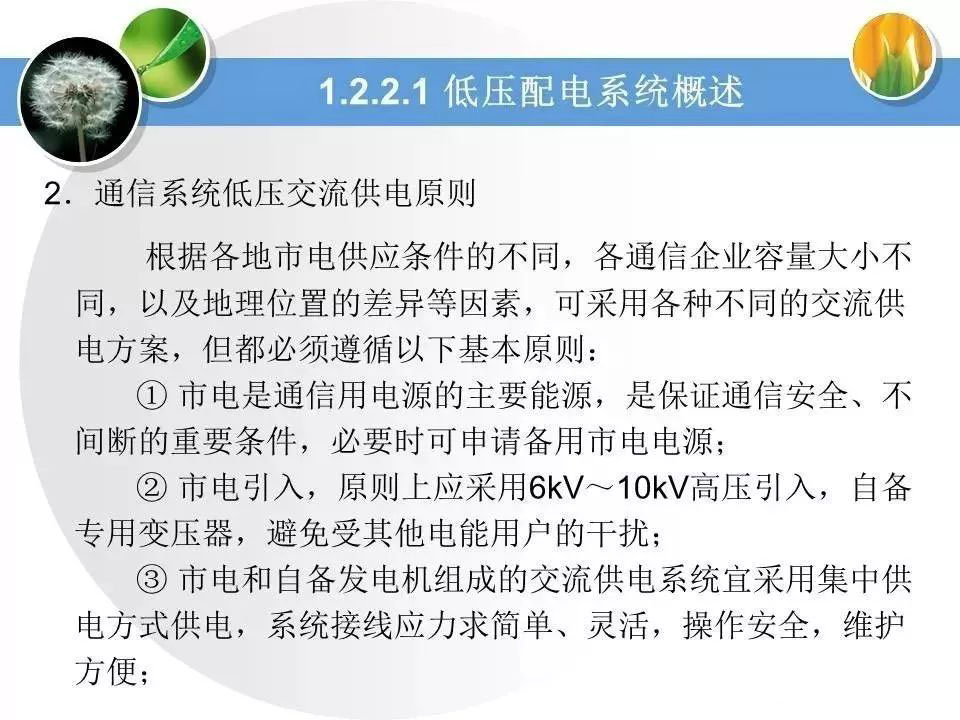 市电的引入一般均从附近现有公用电网上引入馈电线,采用专用电力电缆。应根据附近电网中变电所的位置,电压等级,供电质量,局站重要性等情况选取合适可靠的市电。