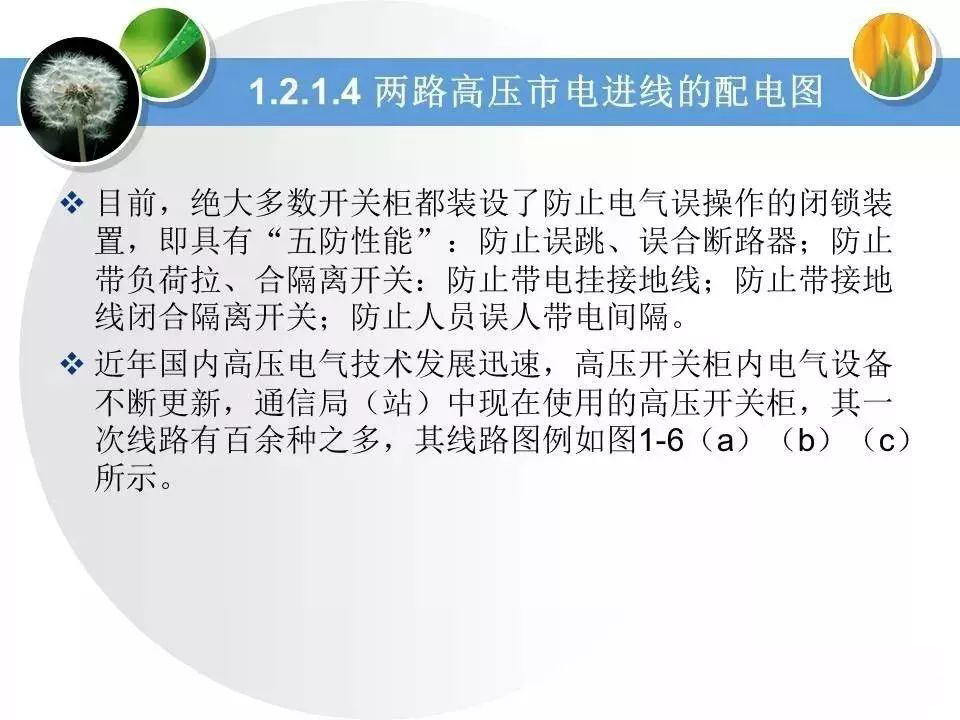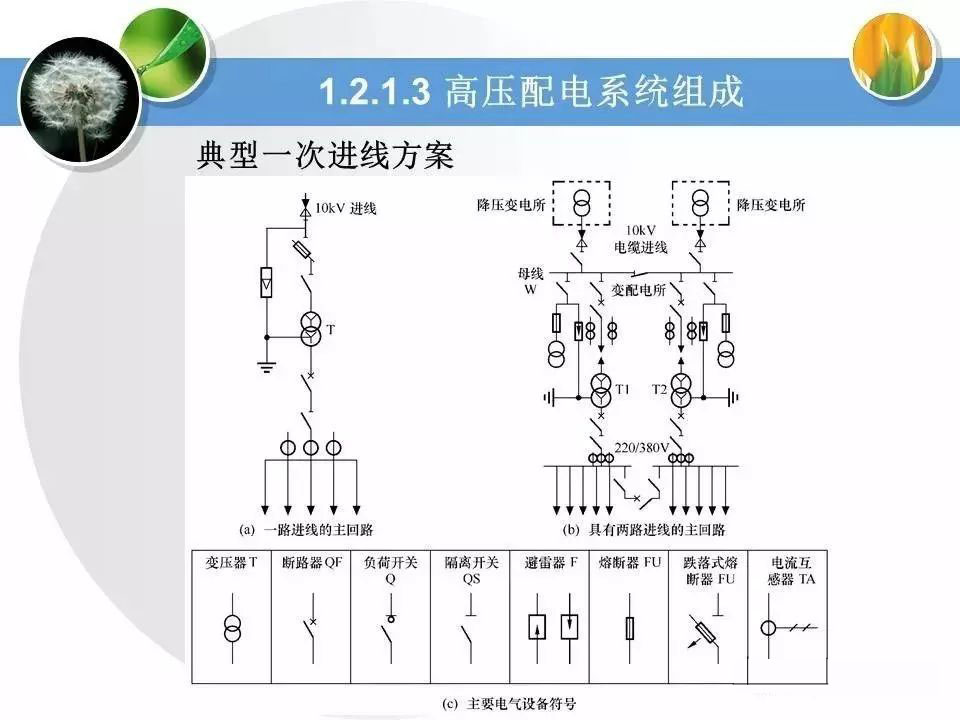 所谓一次线路,表示的是变电所电能输送和分配的电路,通常也称主电路。根据通信局站市电引入的情况和局站对电源可靠性要求的不同,可以有不同的一次线路方案。