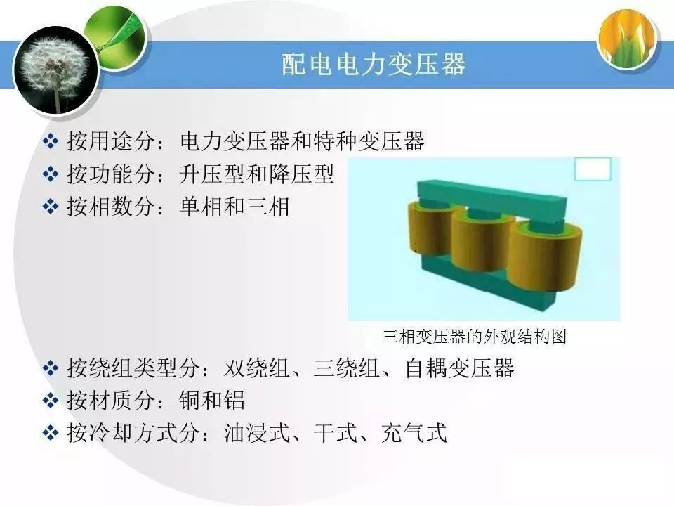 电力变压器有油浸式和干式两种类型,在室内安装变压器时,应考虑变压器室的布置,高低压进出线位置以及操作机构的安全等问题。目前大容量变压器广泛采用了干式变压器。