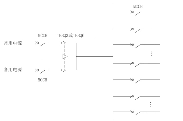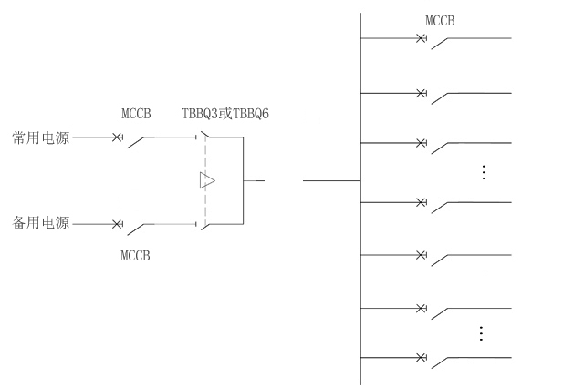 系统的双电源切换推荐使用TBBQ3或TBBQ6系列双电源自动转换开关。