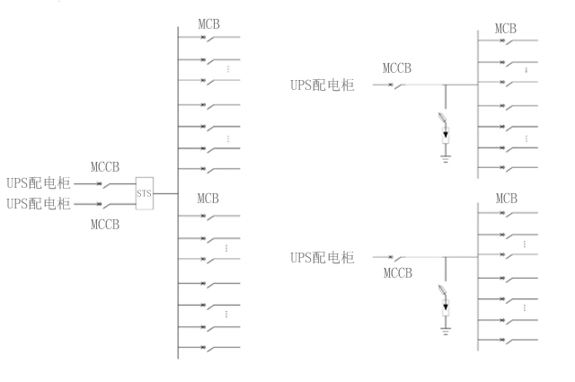 精密配电柜,又叫列头柜,作用是接收UPS输出电,利用支路为机房IT负载设备分配供电。精密配电柜作为最接近IT设备的供电装置,对应元器件的安全性、可靠性、管理灵活性有非常高的要求。精密配电柜系统当前主流配置为单面双路安装和双路STS切换方案,系统一次简图见图4。