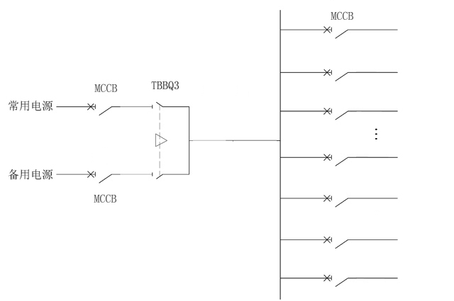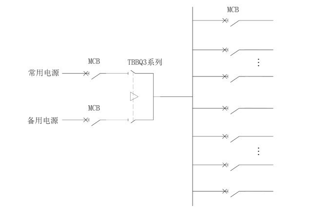 为保证变电站所在失电情况下,变电站仍能进正常操作及检修运行。交流和直流电电源屏的电通常来自两段低压母线,通过双电源切换装置给系统供电。系统双电源切换装置推荐使用TBBQ3系列专用PC级产品。户内