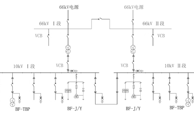 图2 中压单母线分段一次图