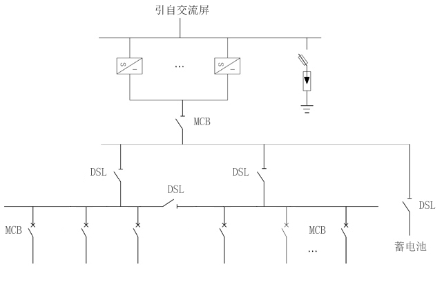 变电站交直流系统又称站用电系统,是保证变电站安全可靠地输送电能的一个必不可少的环节。站用电主要为了变电站内的一、二次设备提供电源。站用交直流系统在变电站所失电的情况下,仍能保证控制信号、保护、自动装置等电源及事故处理工作。主要有交流屏、充电屏、馈线屏、电池屏4部分组成。系统主要有交流和直流系统两部分,对应方案见下图6。